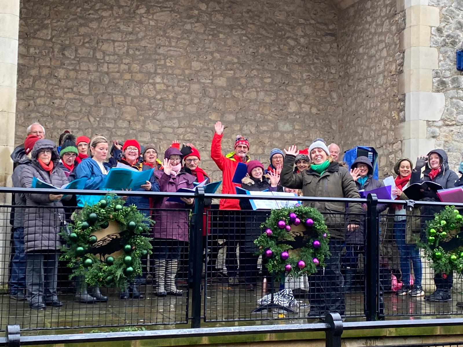 December 7th: Despite dramatic weather conditions, we performed at the Tower of London in a multi choir event. We sang to multiple audiences at indoor and outdoor venues within the grounds of the Tower of London.